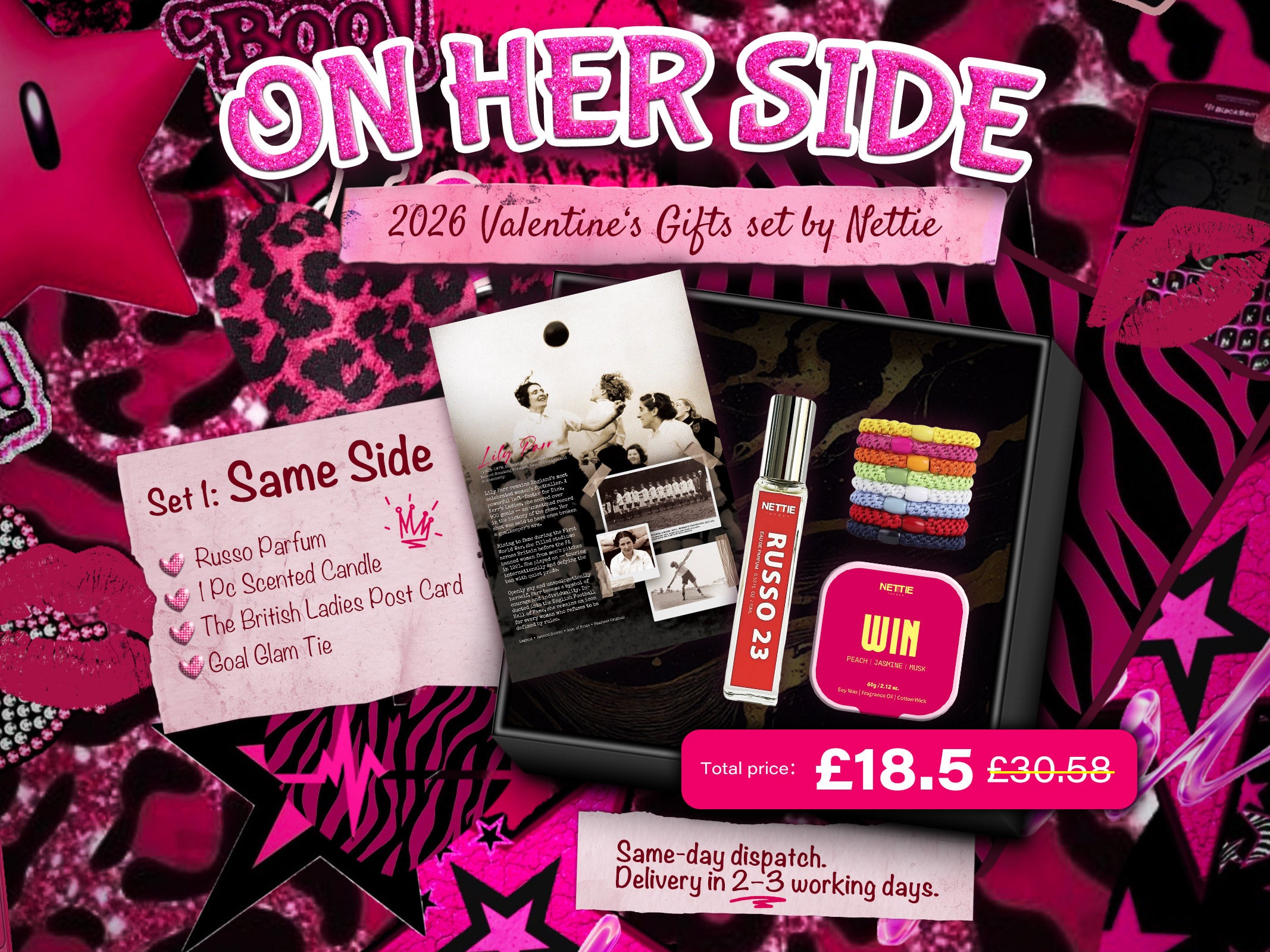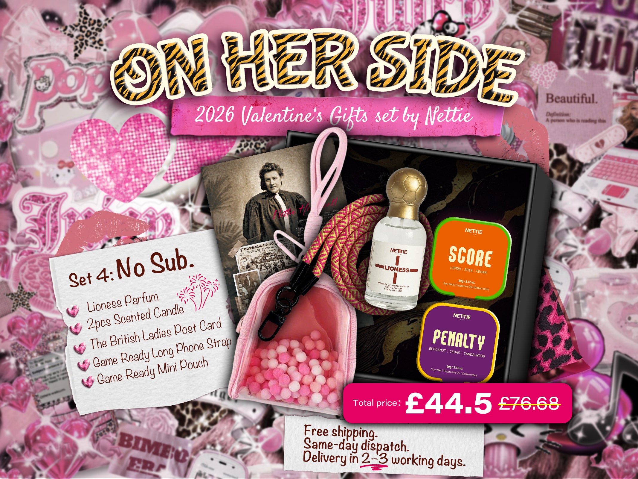 Nettie’s product world spans perfume, candles, lifestyle accessories, sports beauty, cultural collectibles, and curated gift sets — all rooted in the history, spirit, and emotions of women’s football.